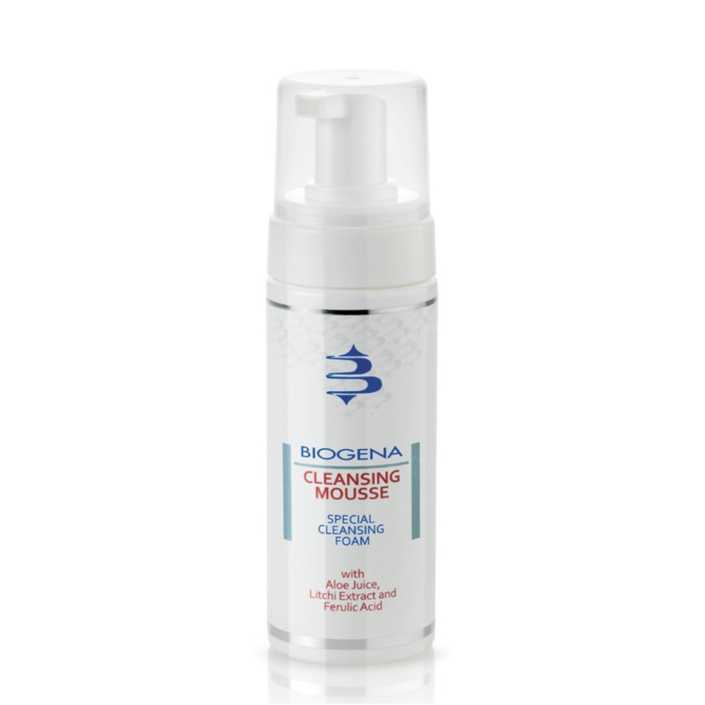 Biogena Cleansing Mousse - очищуючий мус для обличчя. Очищає, зволожує, заспокоює. Ніжна пінка-мус на основі соку алое, екстракту лічі та ферулової кислоти. У синергії зі спеціальними кремами Biogena підвищує рівень зволоженості шкіри, допомагає усунути ознаки гіперчутливості, помітно освіжає колір обличчя, повертаючи сяйво молодості.