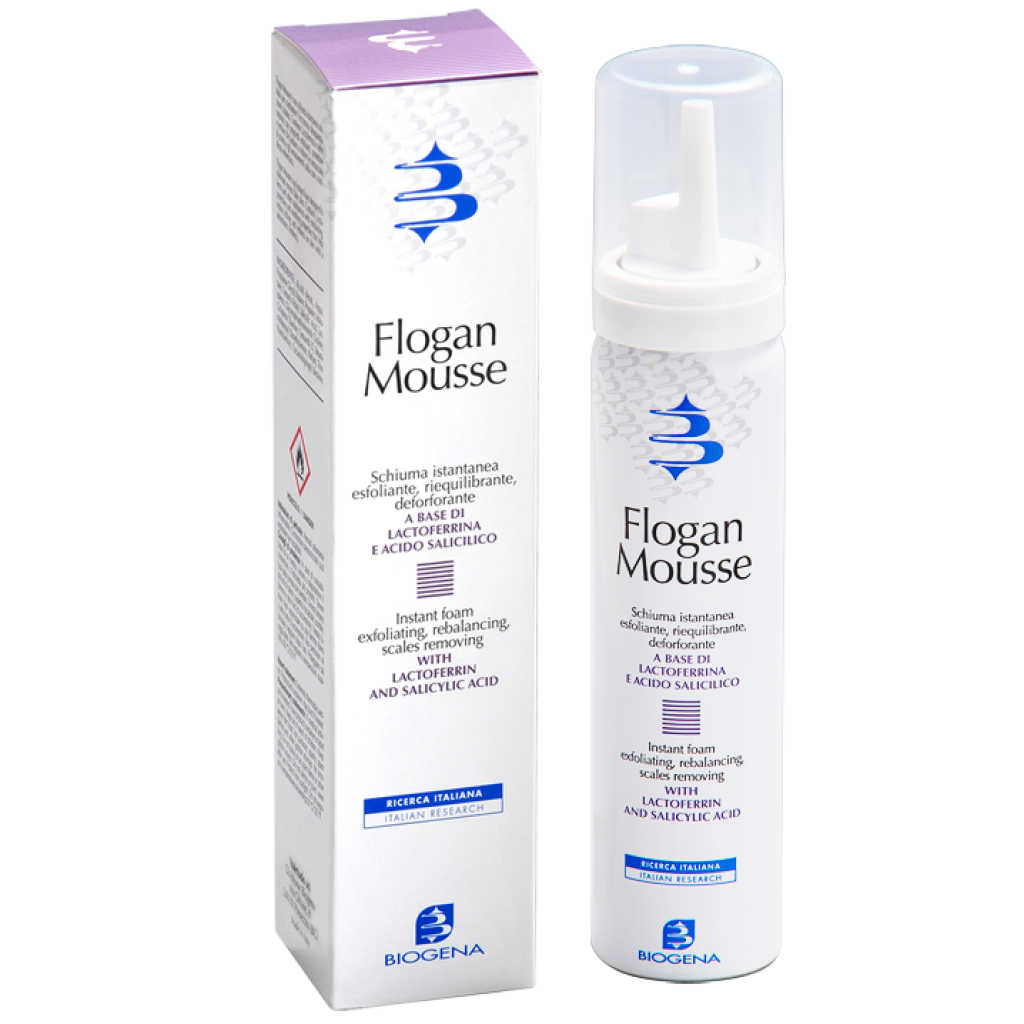 Biogena Flogan Mousse з 2% саліцилової кислоти - спеціальна пінка, здатна м'яко і якісно усунути надмірне лущення шкіри (себорею). Одночасно Flogan Mousse допомагає позбутися почервоніння, печіння і свербіння, пов'язаних з лущенням, запаленнями і себореєю.