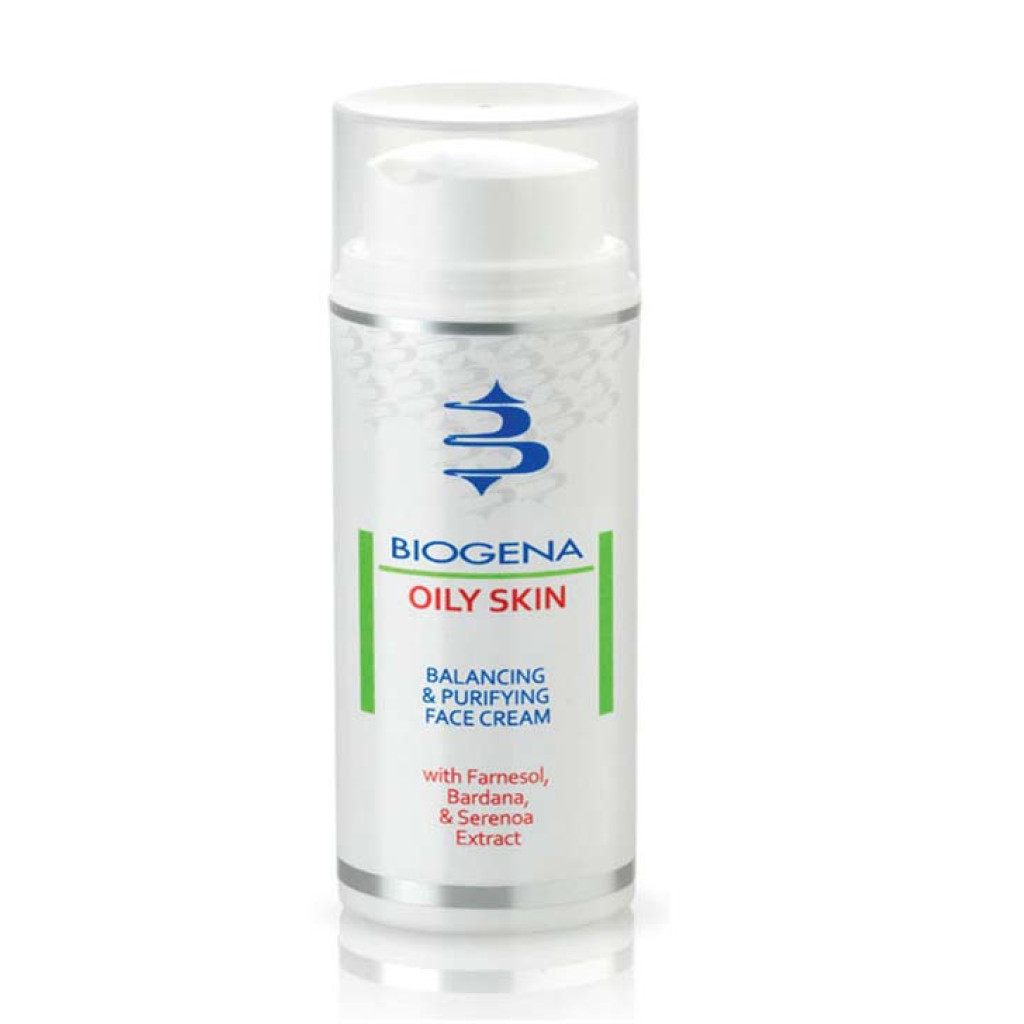 Biogena Oily Skin Balancing & Purifying Face Cream - матуючий крем для жирної шкіри. Нормалізує жирність шкіри, звужує пори. Себорегулюючий, зволожуючий і очищающий крем легкої текстури. Ідеально поглинається. Знімає запалення та запобігає появі повторних висипань. Матує шкіру, усуває надмірний блиск, робить розширені пори менш помітними.
