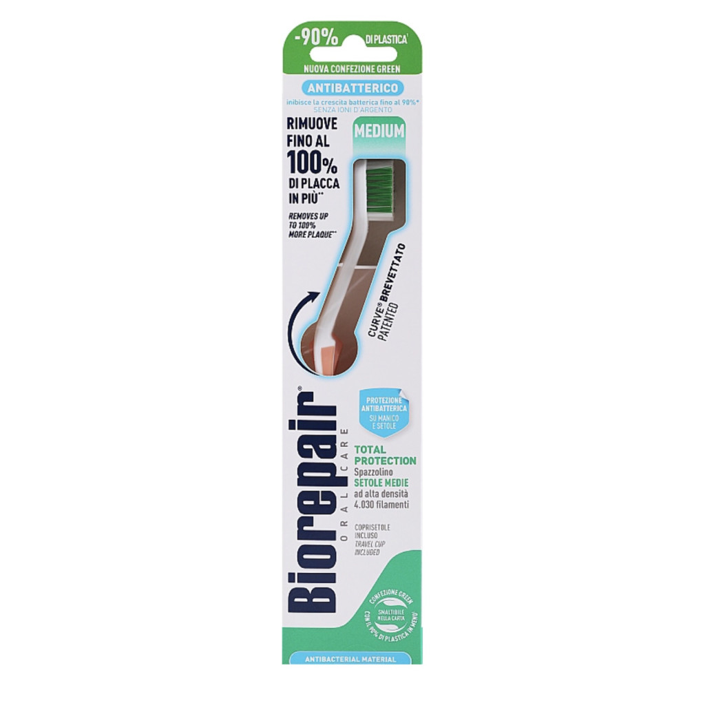 Повноцінна турбота про порожнину рота - це гарантія вашого здоров'я. Скористайтеся зубною щіткою «Досконала чистка» Medium для щоденного догляду Biorepair, яка розроблена італійським виробником для того, щоб підвищити якість чистки. Щітка підходить для чищення зубів, язика і ясен, що забезпечує комплексний догляд. Унікальна форма з вигнутою на 210 градусів головкою дозволяє усунути наліт і залишки їжі в важкодоступних місцях. Легка в експлуатації і багатофункціональна щітка допоможе домогтися бажаної чистоти і здоров'я зубів.