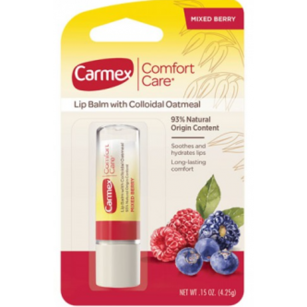 Бальзам для губ Carmex Comfort Care допомагає відновити природну красу губ за допомогою унікальної суміші натуральних колоїдних вівсяних пластівців і багатого антиоксидантами масла насіння фруктів холодного віджиму, що забезпечує тривале зволоження для помітно більш гладких губ.