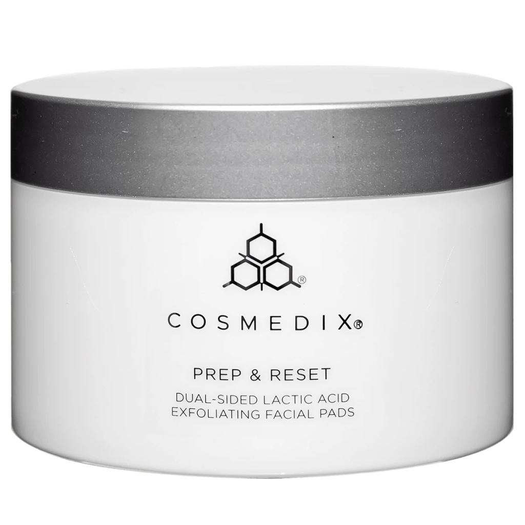 COSMEDIX Prep & Reset - відлущувальні пади для обличчя. Двосторонні кислотні пади, що миттєво роблять шкіру гладкою та сяючою. Делікатні подушечки, промочені з двох сторін молочною, фітиновою, коєвою кислотами, ніацинамідом та натуральними заспокійливими екстрактами. Пади 2 в 1 розроблені для м’якого відлущення змертвілих клітин шкіри та відновлення гідроліпідного бар’єру. Комбінація кислот у складі також допомагає освітлити шкіру, вирівняти тон та текстуру, очистити від щоденних забруднень. А суміш натуральних екстрактів містять високу концентрацію вітаміну А, забезпечуючи антивіковий ефект. Універсальні подушечки, що чудово ввійдуть в б’юті-рутину, особливо актуальними будуть для тьмяної, загрубілої, вікової шкіри, позбавленої сяйва.