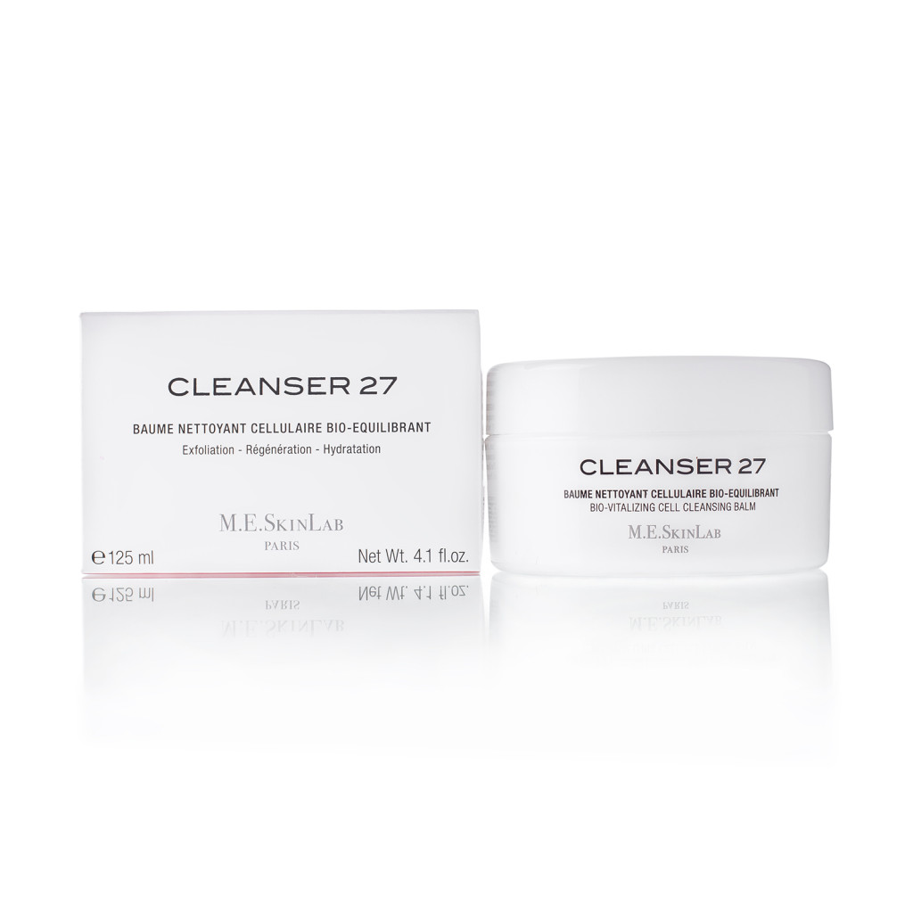 Cosmetics 27 Cleanser 27 забезпечує подвійне очищення й легку ексфоліацію. Унікальна формула має три фази дії: бальзам → олія → молочко. На 100% натуральна формула ретельно очищує шкіру, м’яко відлущує мертві клітини на поверхні епідермісу, і таким чином стимулює регенерацію. Дарує чистоту, зволоження й здорове сяйво.