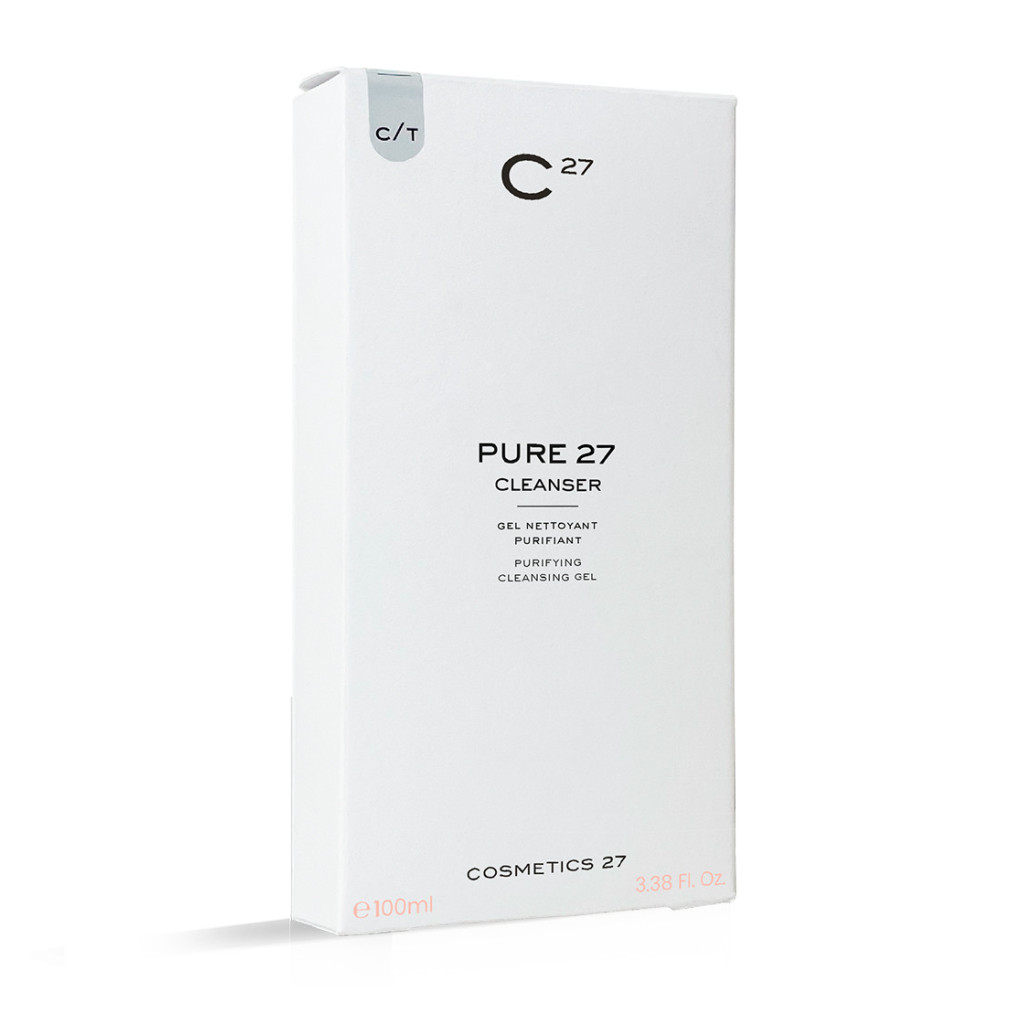 Cosmetics 27 Pure 27 Cleanser - гель для очищення проблемної шкіри з розширеними порами або надлишком себуму. Ніжна формула підходить також для комбінованої та жирної шкіри. Ефективно усуває забруднення, виводить токсини, глибоко очищає шкіру, повертає здорове сяйво, помітно звужує пори.
