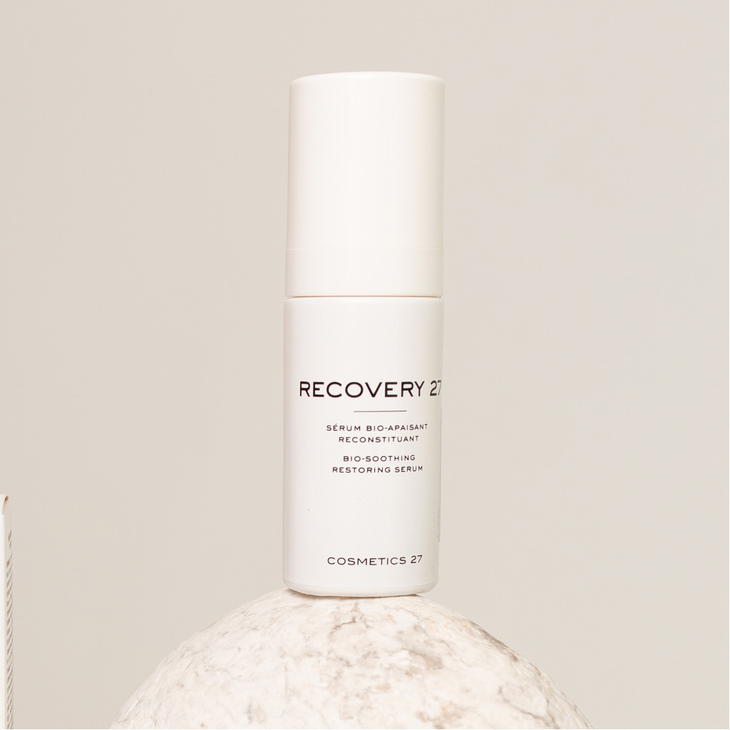 Cosmetics 27 Recovery 27 - відновлювальна біосироватка-антистрес. Формула поєднує в собі всю унікальну силу екстрактів центелли , тому забезпечує швидке «перезавантаження» шкіри. Сироватка спершу заспокоює та дарує шкірі комфорт, а потім запускає механізми відновлення виснаженої, подразненої, перевтомленої шкіри.
