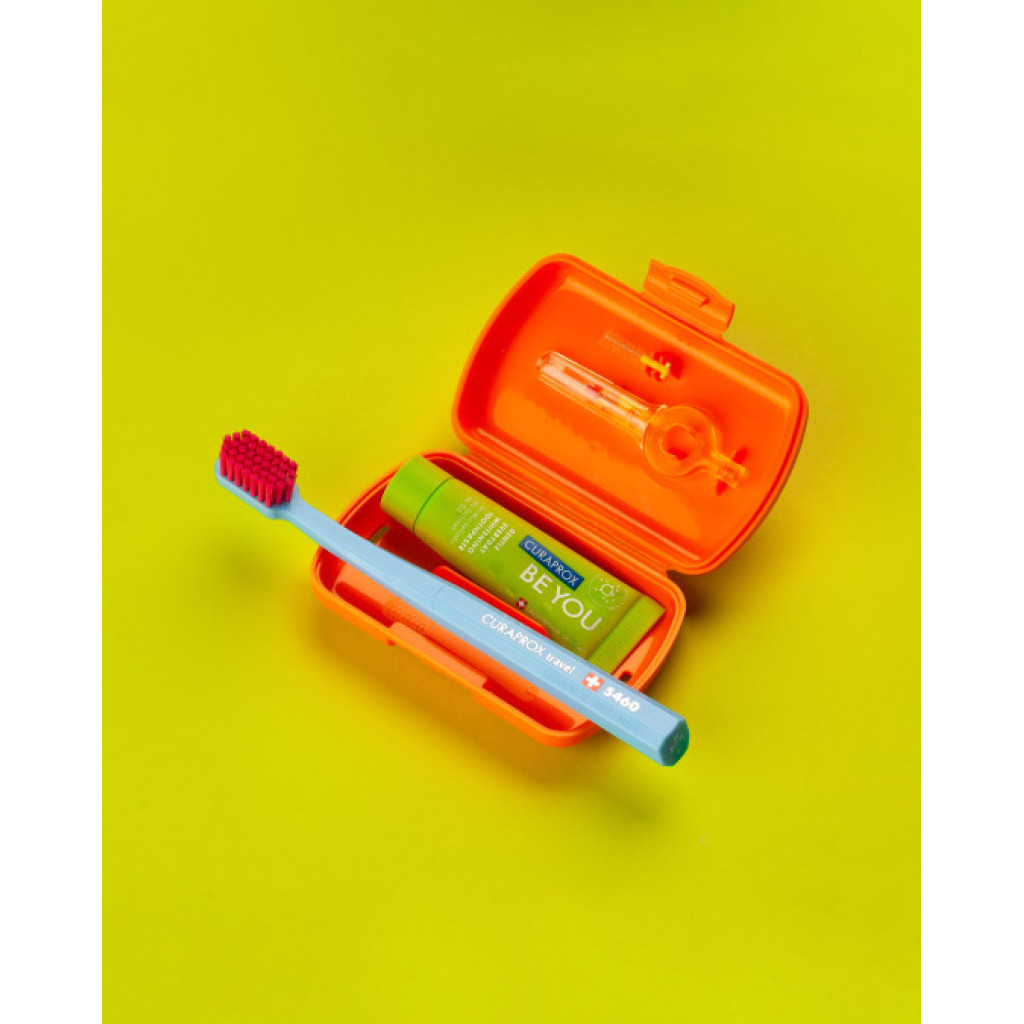 Ніяких компромісів по стилю. Ніяких компромісів щодо здоров'я ротової порожнини. Ваші улюблені продукти Curaprox в вашій валізі, ручній поклажі або у кишені. Цей яскравий, стильний дорожній комплект розміром всього 9,5 см х 6 см.