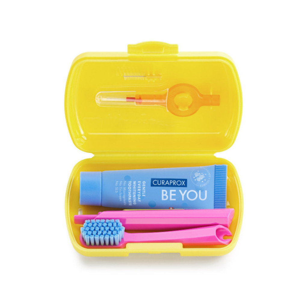 Ніяких компромісів по стилю. Ніяких компромісів щодо здоров'я ротової порожнини. Ваші улюблені продукти Curaprox в вашій валізі, ручній поклажі або у кишені. Цей яскравий, стильний дорожній комплект розміром всього 9,5 см х 6 см.