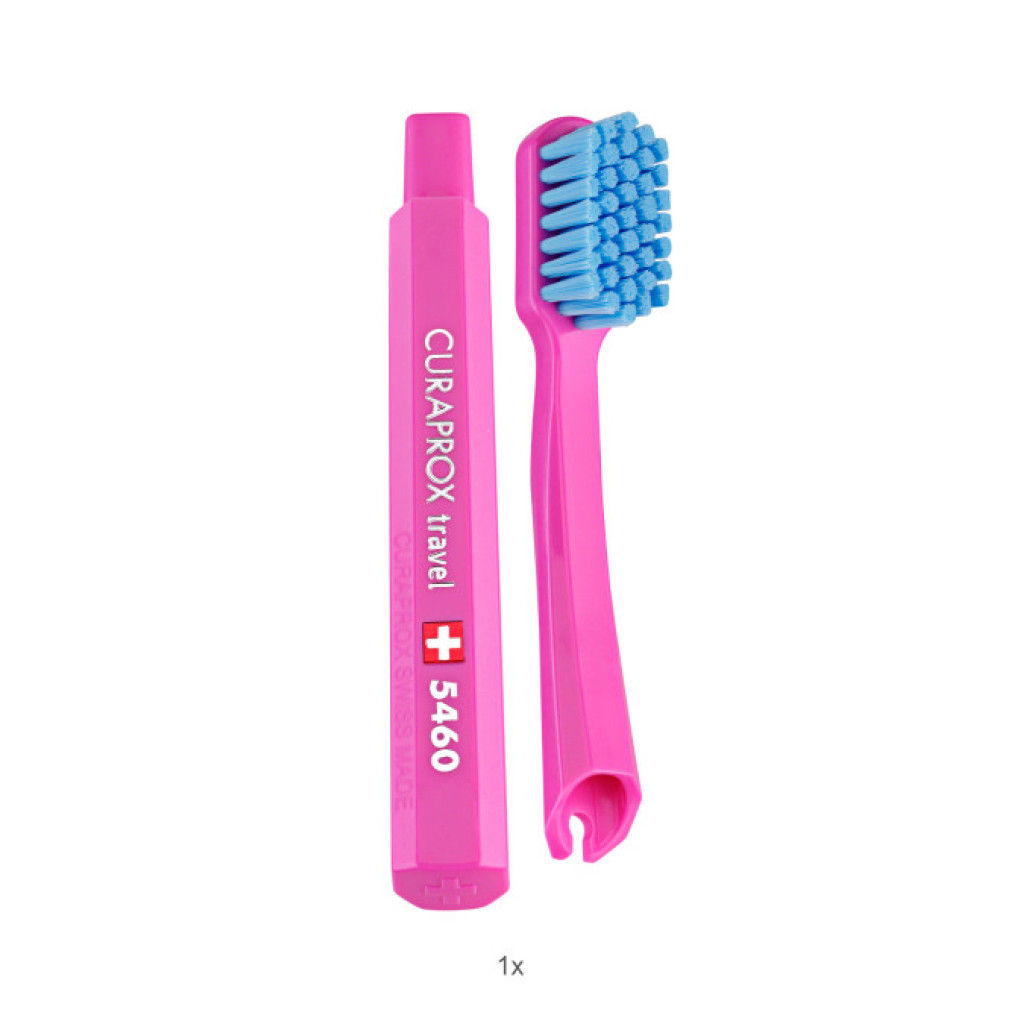 Виключно компактна дорожня зубна щітка, освіжаюча відбілююча зубна паста (10 мл) і два міжзубних йоржика з зручним тримачем. Безкомпромісний догляд за ротовою порожниною від Curaprox.