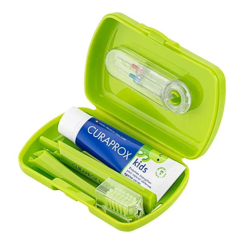 Цей яскравий дорожній набір CURAPROX Kids Travel-Set містить усе необхідне для повноцінного догляду за зубами поза домом — від сімейних відпусток і шкільних екскурсій до ночівель у друзів.