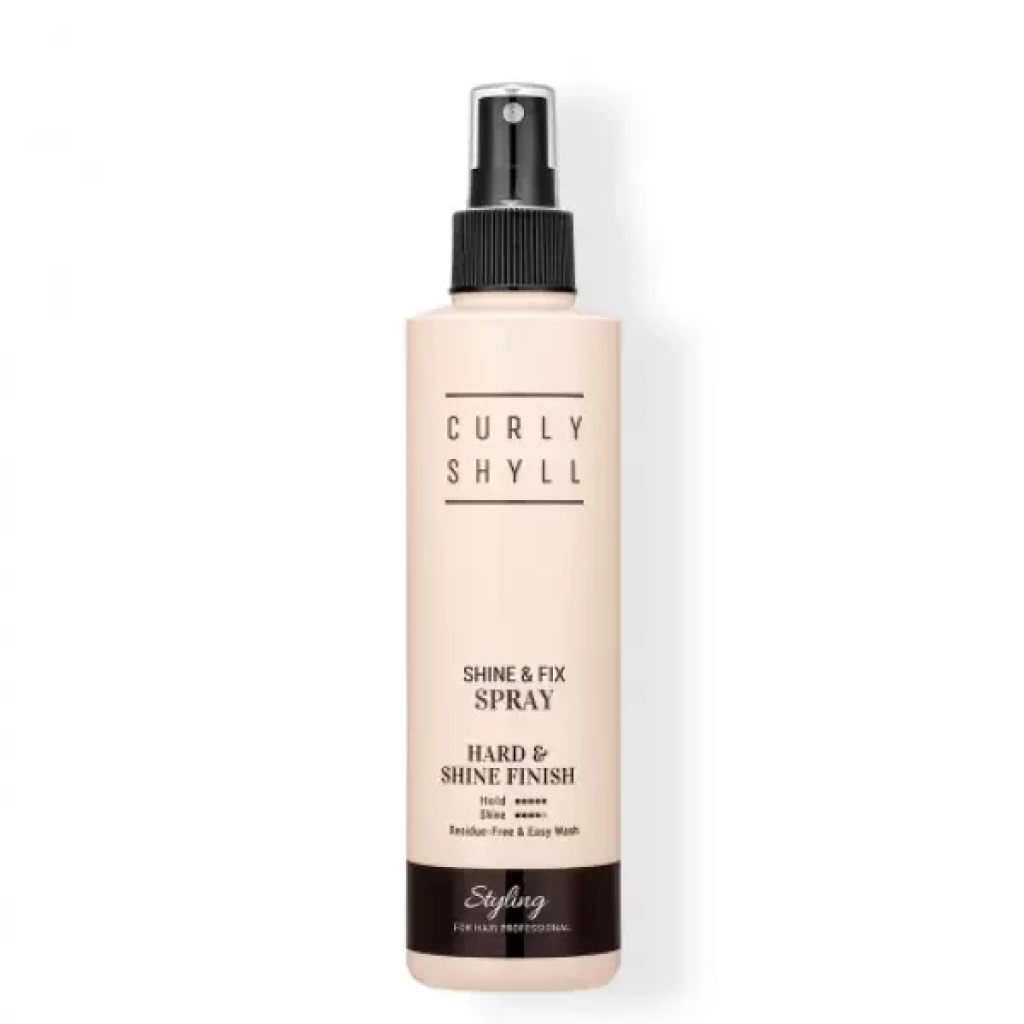 Curly Shyll Shine & Fix Spray - фіксуючий спрей для волосся. Shine & Fix Spray фіксує волосся та зберігає його об’єм для бажаної укладки. Натуральні амінокислоти цукрового буряка, вітаміни та протеїни шовку живлять і додають пасмам блиск. Спрей дає чудовий прикореневий обʼєм та сильну фіксацію для будь-яких зачісок. Має достатньо сильну фіксацію, щоб утримувати коротке та густе волосся.