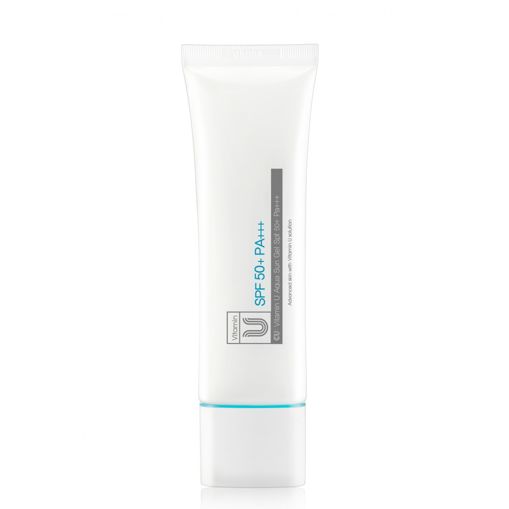 Неймовірно легкий сонцезахисний крем-гель CU: VITAMIN U Aqua Sun Gel (SPF 50 PA) - засіб 3-в- 1 для усіх типів шкіри, включаючи комбіновану і чутливу шкіру. Забезпечує захист широкого спектру від коротких і довгих ультрафіолетових променів UVA/UVB, захищає шкіру від факторів навколишнього середовища, усуває зморшки і пігментацію.