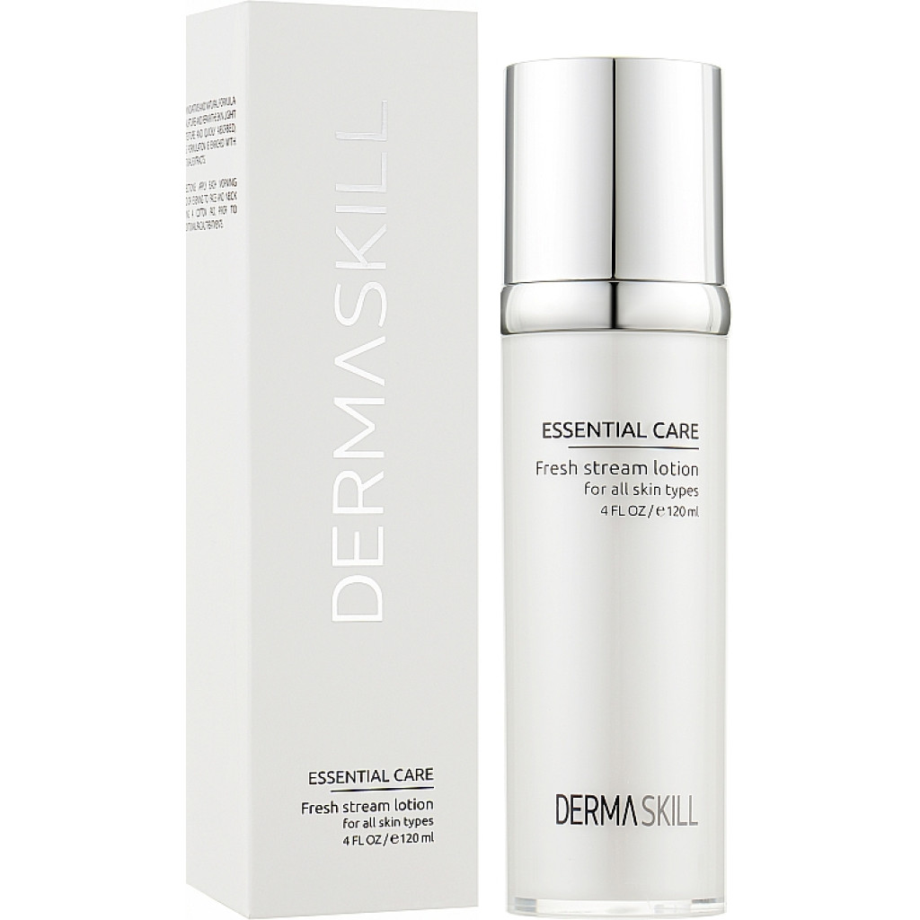 Dermaskill Fresh stream lotion - освіжаючий тонік. Зволожує, наповнюючи клітини церамідами, гіалуроновою кислотою і екстрактом жожоба, ефективно видаляє залишки забруднень і нейтралізує жорсткість води, відновлюючи захисний бар'єр епідермісу і даруючи неймовірну гладкість.