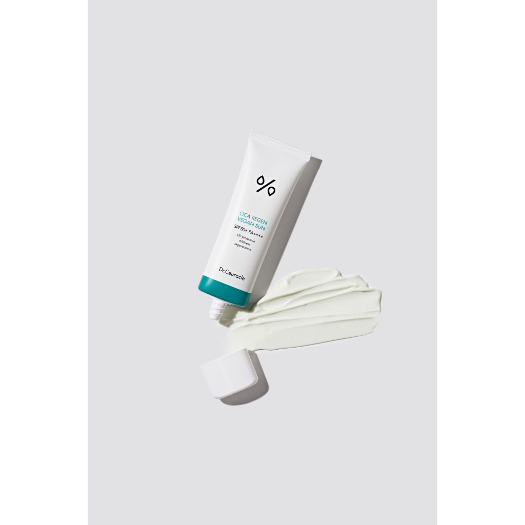 Сонцезахисний веганський крем Dr.Ceuracle містить хімічні фільтри та лягає на шкіру ледь помітним прозорим шаром, захищає від УФ променів типу UVA і UVB, SPF 50PA +++ і від впливу несприятливих факторів навколишнього середовища, особливо від пилу. Гіпоалергенний крем Dr.Ceuracle відновлює шкіру після сонячних опіків або будь-яких інших пошкоджень. Крем насичений комплексом центели, основний інгредієнт якого – Центела Азіатська, також відома як «тигрова трава». Концентрований і пророблений комплекс Центели в серії Cica Regen дарує миттєве відновлення пошкодженій шкірі, бореться з почервоніннями, подразненнями і запаленнями.