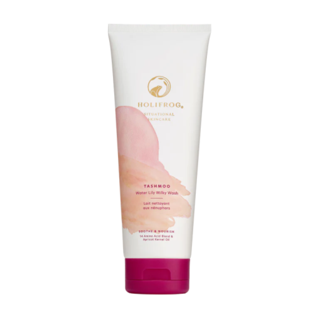 HoliFrog Tashmoo Water Lily Nourishing Milky Wash - м'який очищуючий засіб для шкіри подразненої, схильної до сухості та/або запалень. Засіб Tashmoo - ідеальний вибір для делікатного очищення шкіри. Заспокійливі рослинні екстракти дбайливо усувають забруднення, не порушуючи природні захисні функції та не висушуючи шкірний покрив. Амінокислоти допомагають оновленню шкірного покриву. Шовковиста формула, яка не піниться, створює відчуття легкості і розкоші.