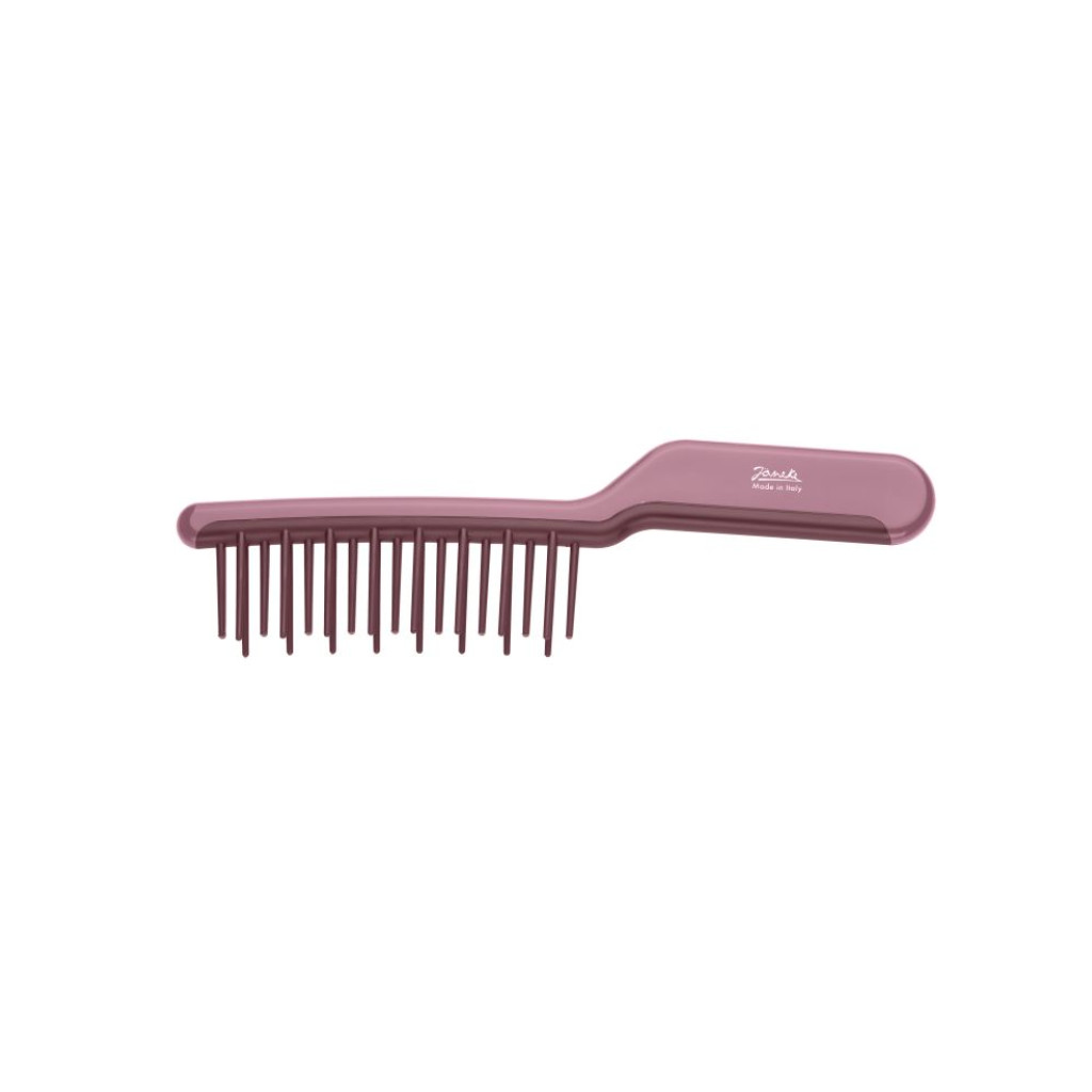 Гребінь Janeke привертає увагу своїм стильним дизайном, він ергономічний, виготовлений з термостійкого міцного пластику. Пластиковий гребінець janeke J Brush абсолютно безпечний у використанні, він не вступає в реакцію з активними речовинами фарб. Навіть якщо проводити доглядові процедури для волосся, зберігає цілісність під час контакту з водою, на відміну від дерев'яних та інших природних матеріалів.