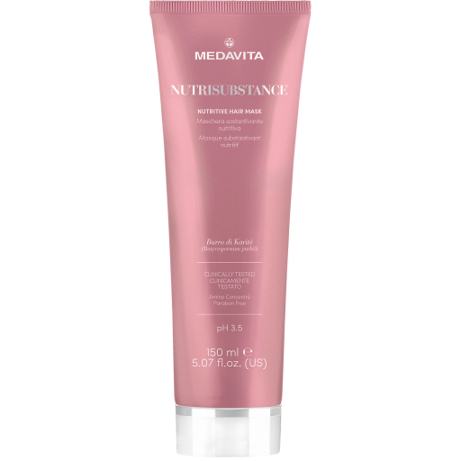 Medavita Nutrisubstance Nutritive Hair Mask — ультраживильна маска для сухого волосся. Насичена, глибоко зволожувальна маска, зміцнює волокна волосся, пом'якшує та повертає йому блиск. Волосся наповнене, м’яке та блискуче.