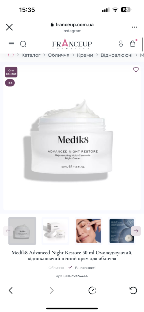 Крем Medik8 Advanced Night Restore один із моїх фаворитів на зиму, користуюсь із задоволенням, шкіра дуже у гарному стані, пружна, сяюча. Дуже дякую!
