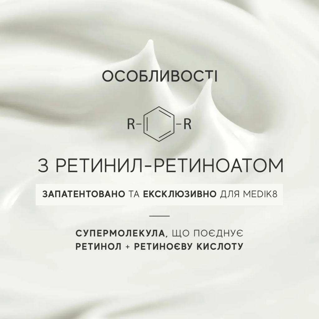 Після 8 років роботи, в тому числі 3 років досліджень, проведених вченими Medik8, народився r-Retinoate®, в основі якого – запатентована молекула під назвою ретиніл ретиноат.