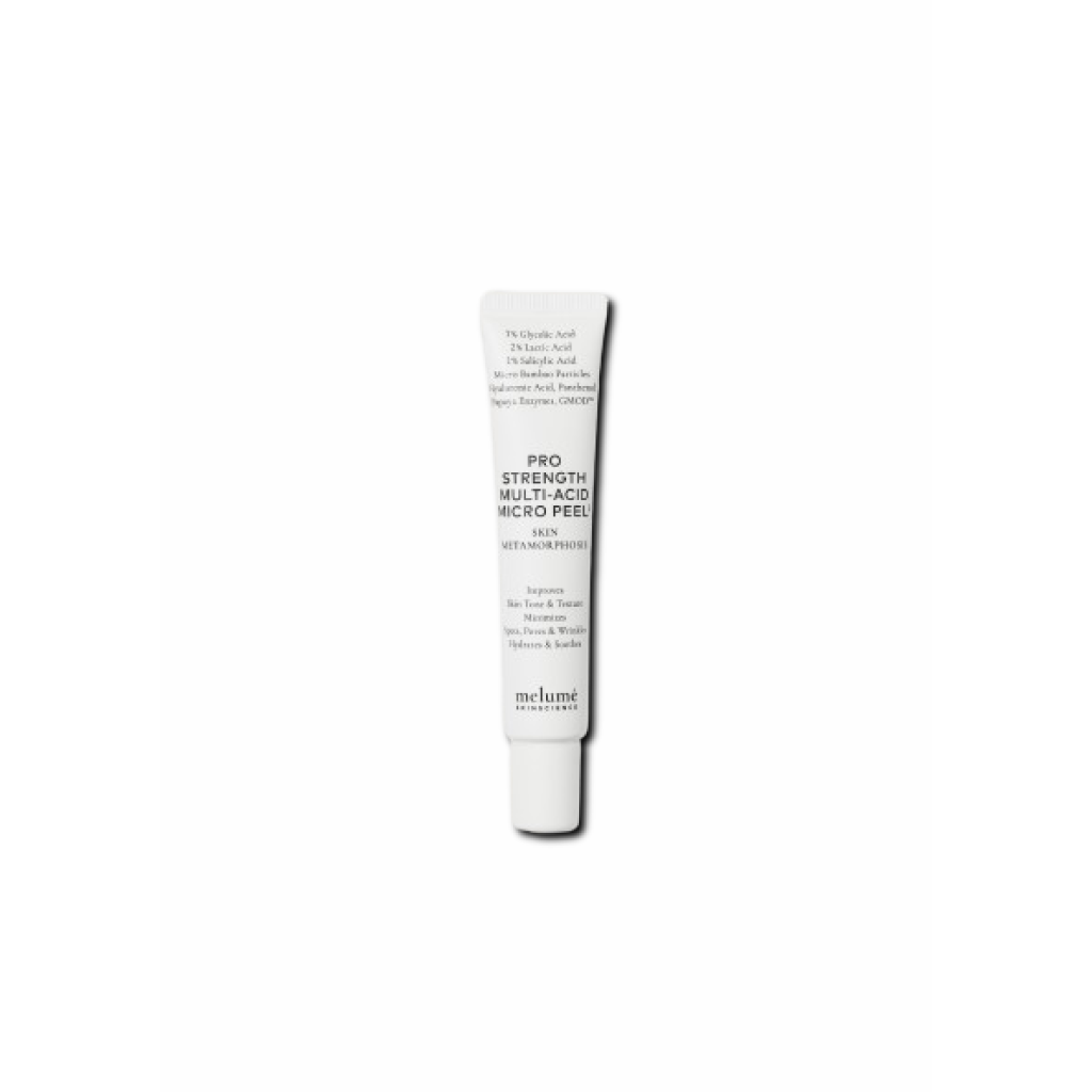 Melume Pro Strength Multi-Acid Micro Peel3 - мультикислотний пілінг для обличчя. Ефект як після професійної процедури. Активні компоненти миттєво діють на шкіру, розгладжуючи та освітлюючи її, роблячи тон шкіри рівним і поліпшуючи її текстуру. Оновіть свою шкіру з цим суперефективним мікровідлущувальним пілінгом для обличчя. Зволожує, заспокоює шкіру, зменшує видимість дрібних і глибоких зморщок, пігментних плям та пор.