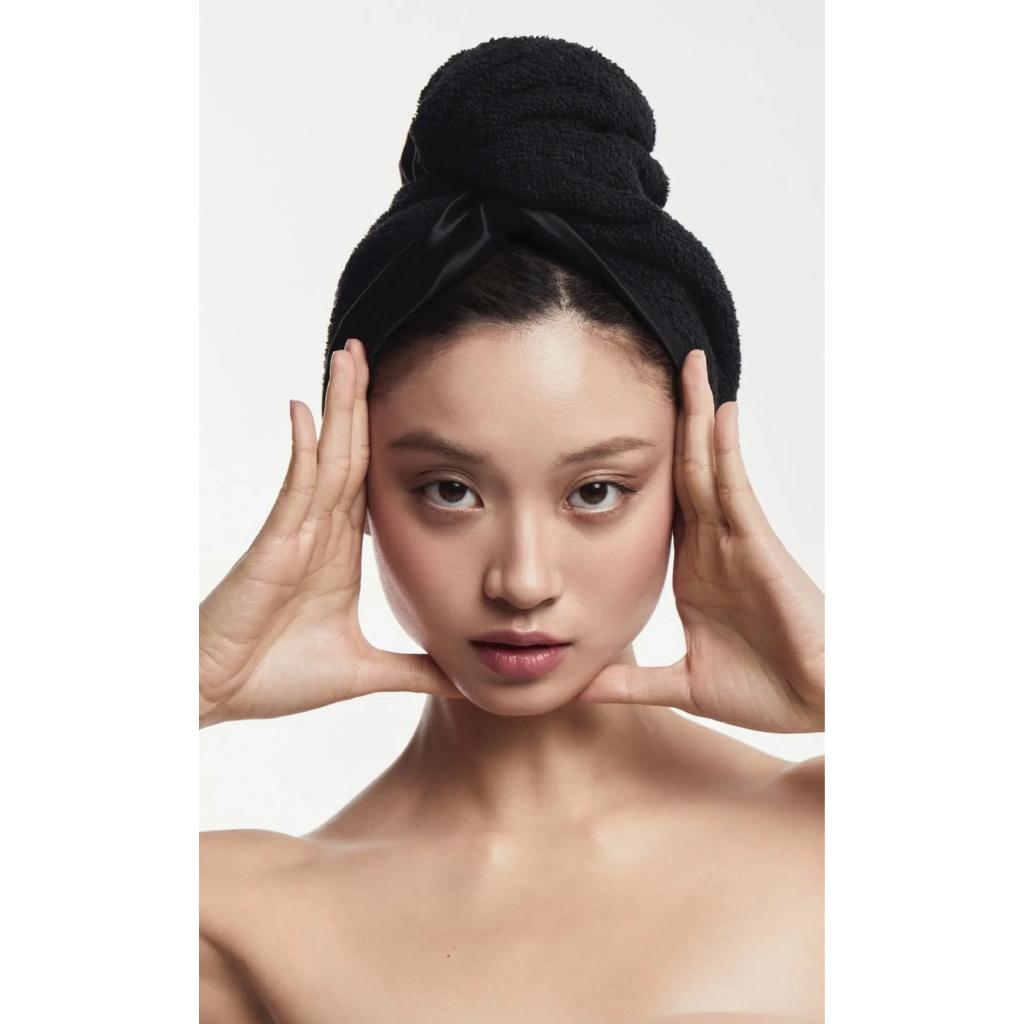 MON MOU Hair Turban Black - двосторонній рушник-тюрбан для волосся з натуральним шовком.