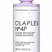 Olaplex No.4P Blonde Enhancer Toning Shampoo - тонуючий фіолетовий шампунь для блонду. Шампунь, створений за технологією OLAPLEX, до складу якого входить Bis-Aminopropyl Diglycol Dimaleate, який допомагає зберегти дисульфідні зв'язки у структурі волосся, попри його освітлення та фарбування. Окрім очищення, шампунь усуває небажані жовті та мідні тони з волосся, залишаючи холодний блонд. На додаток, бетаїн зволожує пасма та шкіру голови.