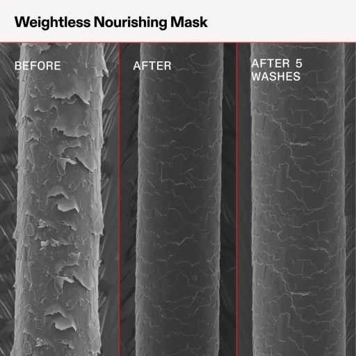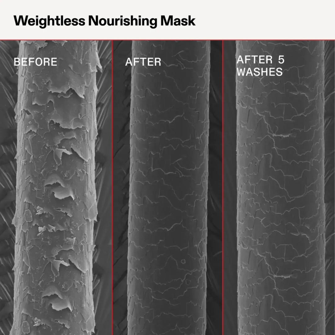 Olaplex Weightless Nourishing Mask — маска для волосся "Невагоме живлення". Ця маска для волосся миттєво надає об'єм тонкому та середньому волоссю та розроблена з використанням біоміметичної технології кутикули, яка утримує легке зволоження та закриває кутикулу волосся вже після 5 застосувань. Вона миттєво посилює блиск, зменшує та допомагає запобігти ламкості волосся після кожного застосування, сприяючи збереженню довжини на довгі роки.