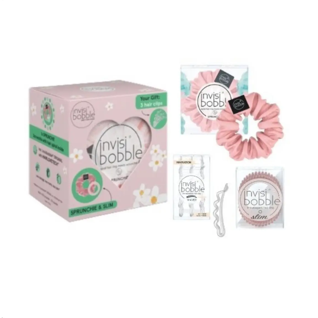 Подарунковий набір invisibobble Easter Besties для прихильниць стильних та різноманітних hair-образів. Усередині ніжної рожевої коробочки – три резинки SLIM у рожевому кольорі, три прозорі заколки WAVER, а також резинка SPRUNCHIE у ніжно-рожевому відтінку. Спіралеподібні SLIM надійно фіксують зачіску, не залишають заломів та не викликають головного болю. Заколка WAVER зроблена з цілісного матеріалу, не має металевих частин і гострих країв. Нижня частина WAVER повторює форму голови, тим самим забезпечує високий рівень комфорту при використанні. SPRUNCHIE - тканинна резинка в стилі 80-х, усередині якої захована знаменита резиночка ORIGINAL. Аксесуари invisibobble підходять для всіх типів волосся.
