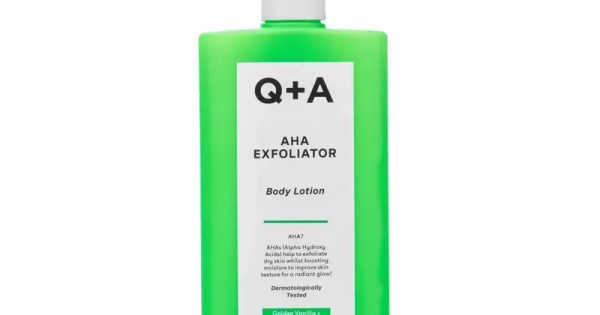 Q+A AHA Body Lotion — лосьйон для тіла з AHA-кислотами. Інтенсивний зволожувальний лосьйон, розроблений для м’якого оновлення клітин та підтримки тривалого зволоження шкіри. Формула збагачена комплексом AHA-кислот (молочна та гліколева), які делікатно відлущують ороговілі клітини, стимулюють процес регенерації та розгладжують текстуру. Уже після кількох застосувань шкіра стає м’якшою, рівнішою та сяючою.