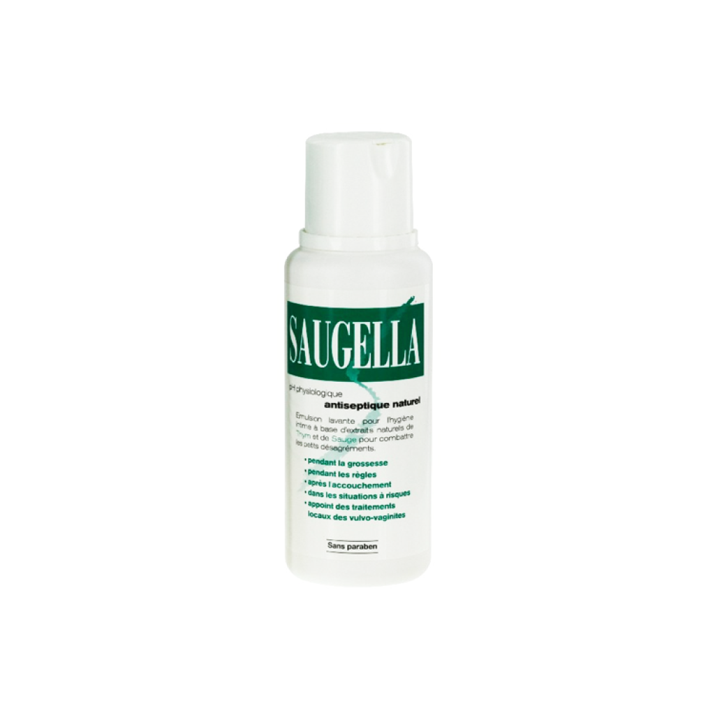 Saugella Natural Antiseptic - це емульсія без мила, збагачена натуральними екстрактами чебрецю і шавлії, яка допомагає боротися з незручностями, особливо під час вагітності, менструації, після пологів, і в якості додаткового місцевого лікування вульвовагініту.