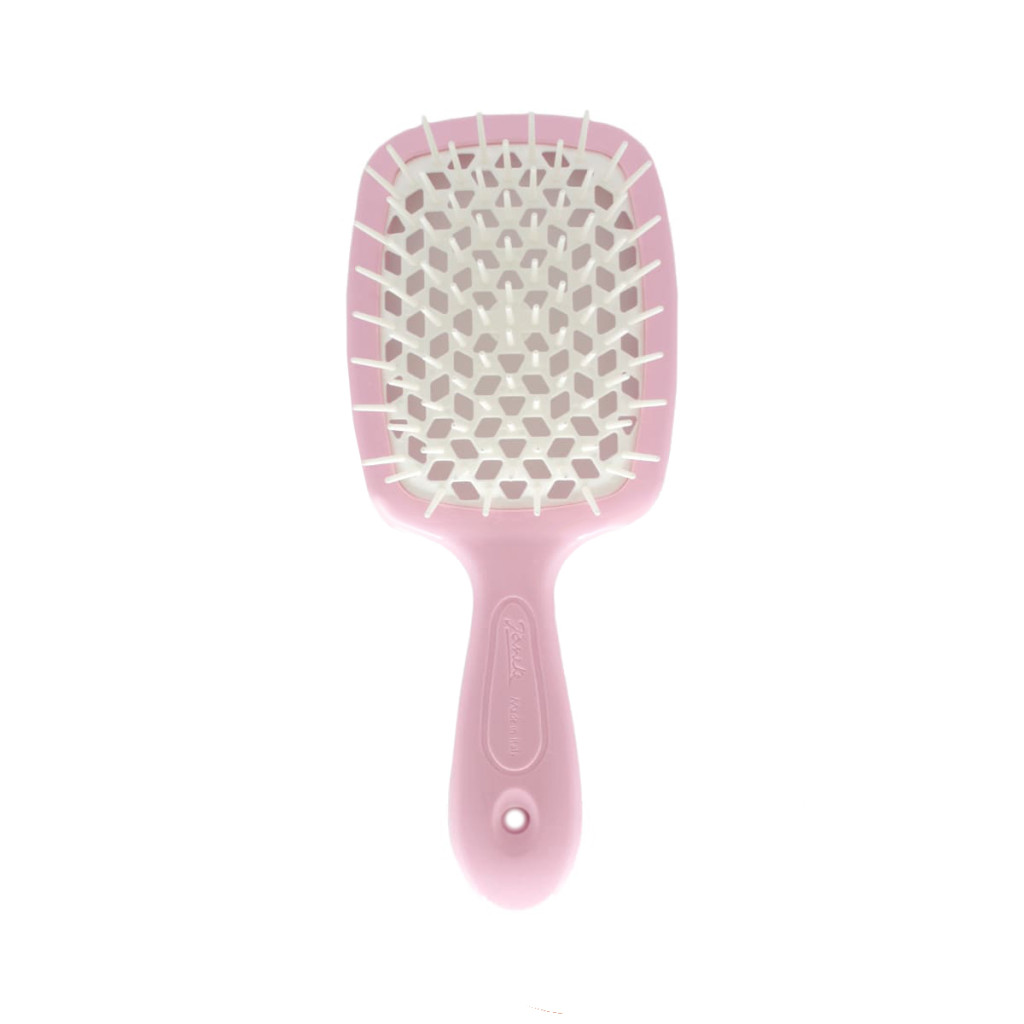Щітка легко і дбайливо розплутує волосся, не травмуючи їх структуру. Масажна база щітки має отвори у формі сот бджолиного вулика, які рівномірно розподіляють гаряче повітря фена, висушуючи волосся всього за кілька миттєвостей без будь-якої шкоди, не травмуючи шкіру голови, не електризуючи волосся. Легка, з ергономічною ручкою і м'якими щетинками щітка швидко і якісно впорається навіть з самим неслухняним волоссям. Підходить як для сухого, так і для мокрого волосся. Щітка Janeke Small Superbrush значно спростить укладання волосся і подарує їм здоров'я і красу.
