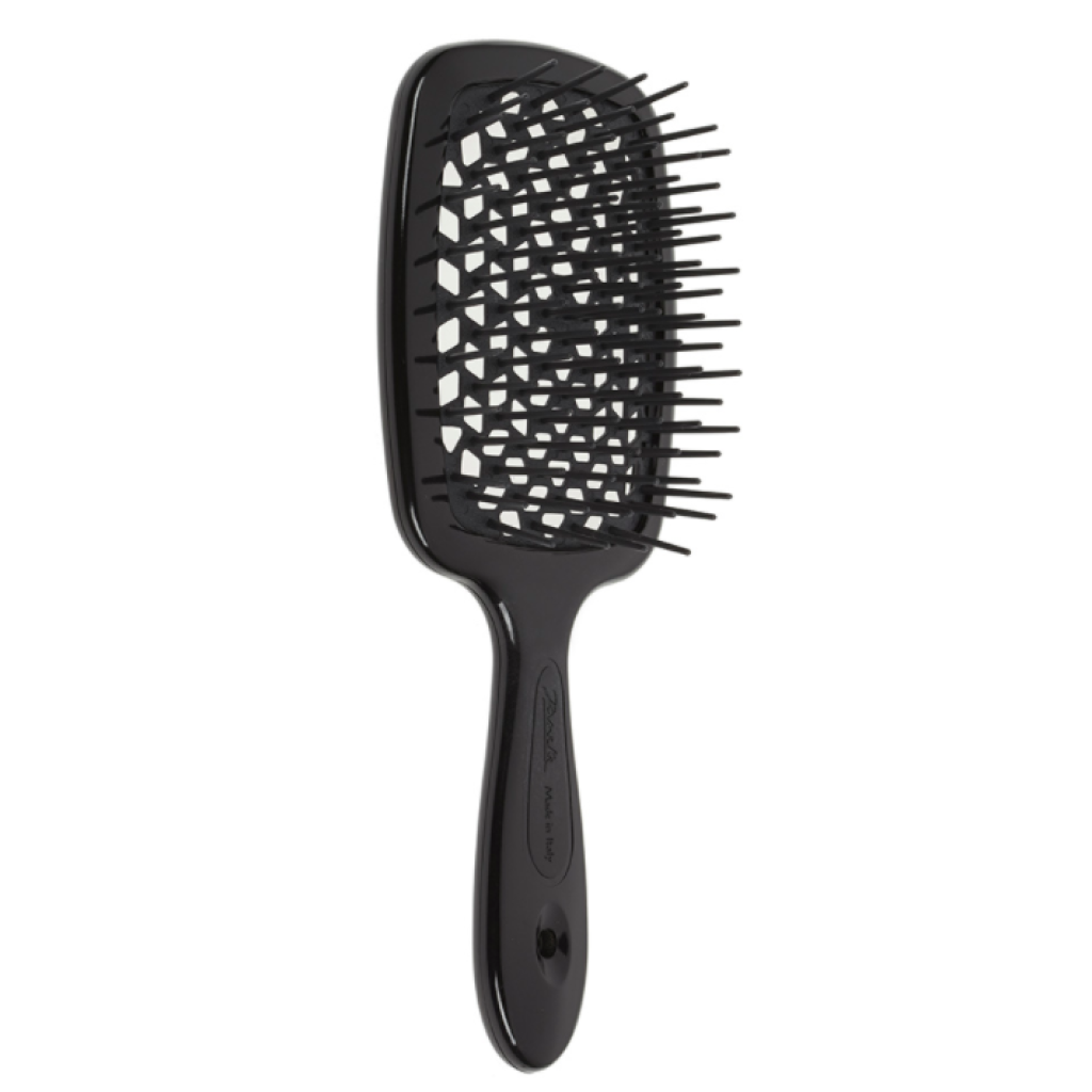 Щітка Janeke Superbrush 1830 легко і дбайливо розплутує волосся, не травмуючи їх структуру. Масажна база щітки має отвори у формі сот бджолиного вулика, які рівномірно розподіляють гаряче повітря фена, висушуючи волосся всього за кілька миттєвостей без будь-якої шкоди, не травмуючи шкіру голови, не електризуючи волосся. Легка, з ергономічною ручкою і м'якими щетинками  Janeke Superbrush 1830 швидко і якісно впорається навіть з самим неслухняним волоссям. Підходить як для сухого, так і для мокрого волосся. Щітка Janeke Superbrush 1830 значно спростить укладання волосся і подарує їм здоров'я і красу.