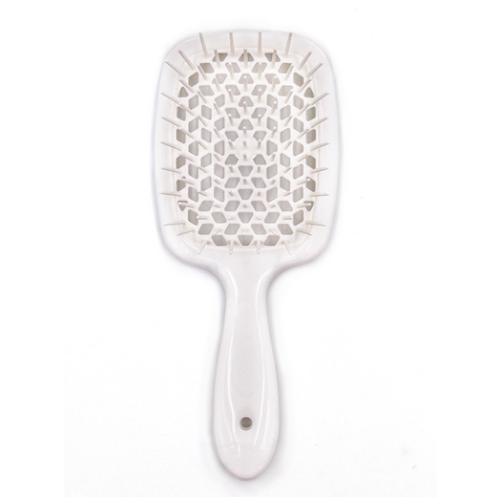 Щітка Janeke Superbrush 1830 легко і дбайливо розплутує волосся, не травмуючи їх структуру. Масажна база щітки має отвори у формі сот бджолиного вулика, які рівномірно розподіляють гаряче повітря фена, висушуючи волосся всього за кілька миттєвостей без будь-якої шкоди, не травмуючи шкіру голови, не електризуючи волосся. Легка, з ергономічною ручкою і м'якими щетинками Janeke Superbrush 1830 швидко і якісно впорається навіть з самим неслухняним волоссям. Підходить як для сухого, так і для мокрого волосся. Щітка Janeke Superbrush 1830 значно спростить укладання волосся і подарує їм здоров'я і красу.