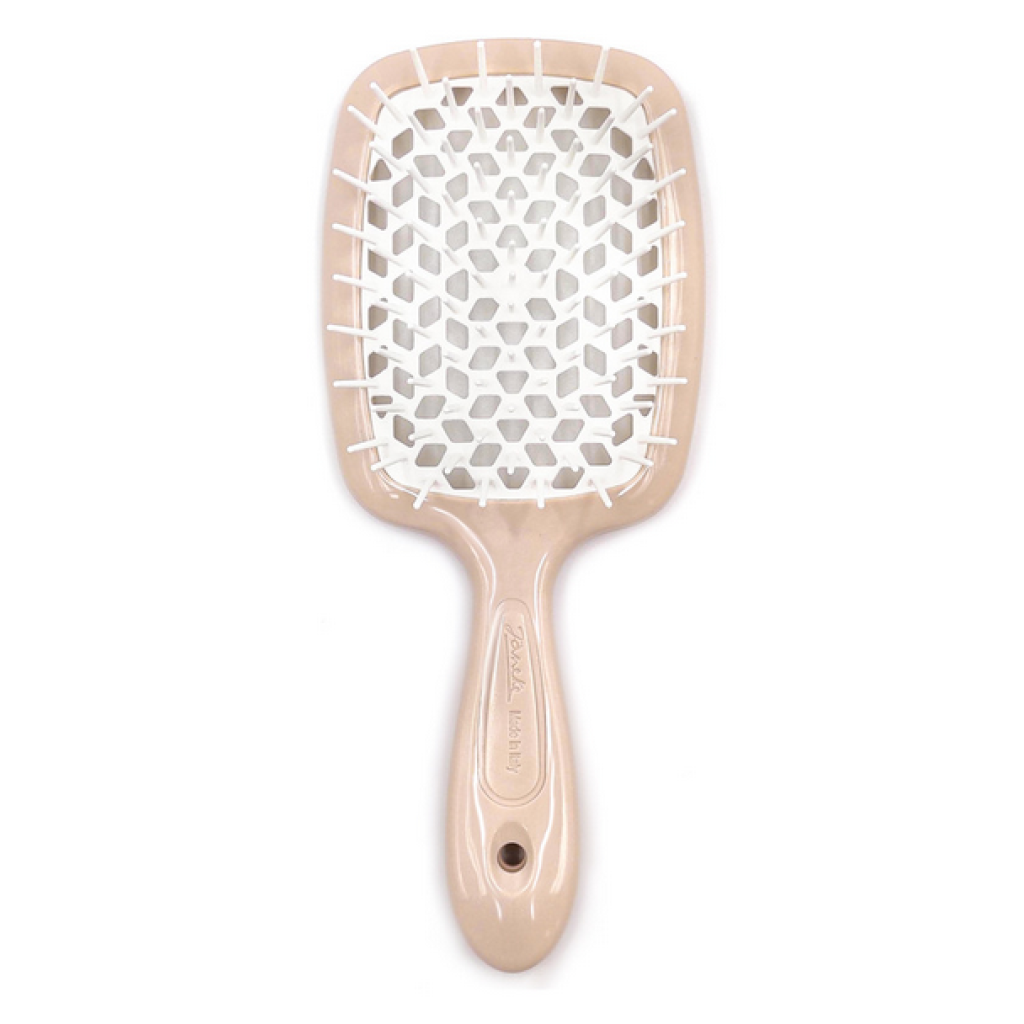 Щітка Janeke Superbrush 1830 легко і дбайливо розплутує волосся, не травмуючи їх структуру. Масажна база щітки має отвори у формі сот бджолиного вулика, які рівномірно розподіляють гаряче повітря фена, висушуючи волосся всього за кілька миттєвостей без будь-якої шкоди, не травмуючи шкіру голови, не електризуючи волосся. Легка, з ергономічною ручкою і м'якими щетинками Janeke Superbrush 1830 швидко і якісно впорається навіть з самим неслухняним волоссям. Підходить як для сухого, так і для мокрого волосся. Щітка Janeke Superbrush 1830 значно спростить укладання волосся і подарує їм здоров'я і красу.