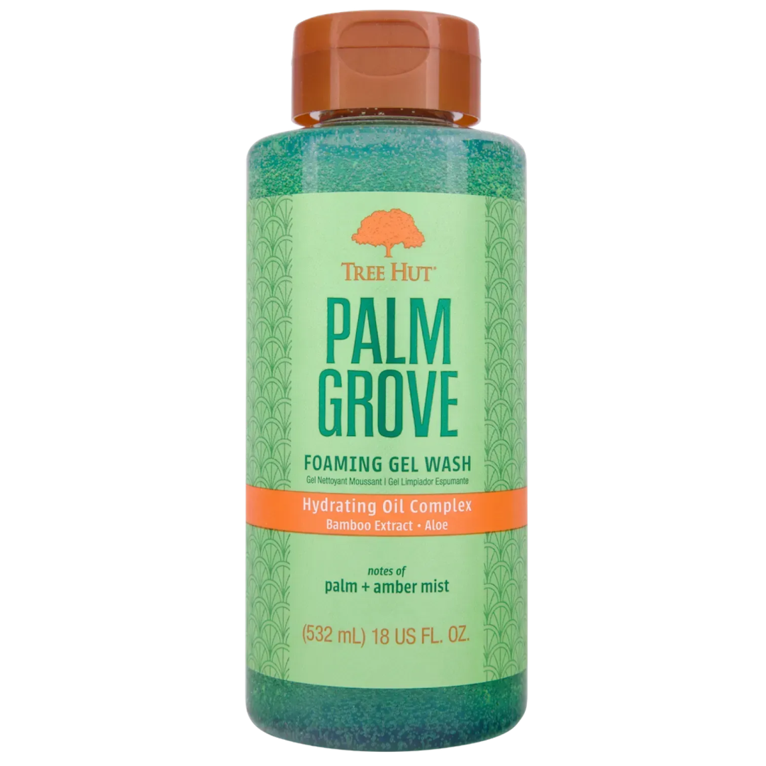 Tree Hut Palm Grove — освіжаючий пінний гель з тропічним ароматом та збагаченою формулою для м'якого очищення шкіри. Формула створює густу ароматну піну, ефективно очищає без пересушування завдяки м'яким очисним компонентам та живильним оліям. Тропічний аромат з нотами екзотичних фруктів, кокоса та квітів створює spa-відчуття під час душу. Гель не містить парабенів та сульфатів, що робить його безпечним для регулярного застосування.