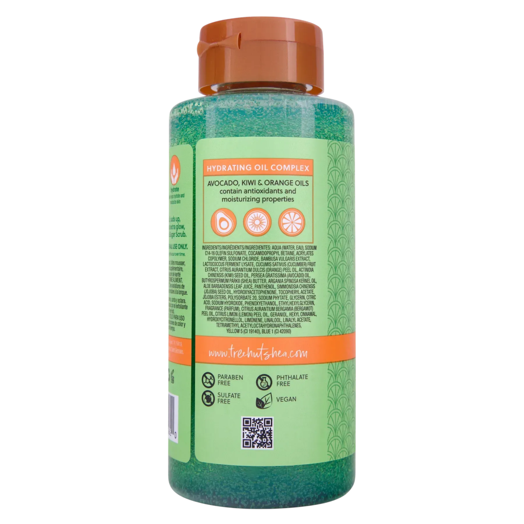Aqua (Water, Eau), Sodium C14-16 Olefin Sulfonate, Cocamidopropyl Betaine, Acrylates Copolymer, Sodium Chloride, Bambusa Vulgaris Extract, Lactococcus Ferment Lysate, Cucumis Sativus (Cucumber) Fruit Extract, Citrus Aurantium Dulcis (Orange) Peel Oil, Actinidia Chinensis (Kiwi) Seed Oil, Persesa Gratissima (Avocado) Oil, Butyrospermum Parkii (Shea) Butter, Argania Spinosa Kernel Oil, Aloe Barbadensis Leaf Juice, Panthenol, Simmondsia Chinensis (Jojoba) Seed Oil, Hydroxyacetophenone, Tocopheryl Acetate, Jojoba Esters, Polysorbate 20, Sodium Phytate, Glycerin, Citric Acid, Sodium Hydroxide, Phenoxyethanol, Ethylhexylglycerin, Fragrance (Parfum), Geraniol, Hexyl Cinnamal, Hydroxycitronellol, Limonene, Linalool, Yellow 5 (Ci 19140), Blue 1 (Ci 42090).