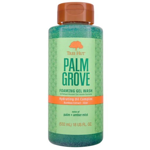 Tree Hut Palm Grove Foaming Gel Wash — гель для душу із заспокійливим ароматом, який переносить ваші почуття до сонячного оазису, з нотками пальмового листя, жасмину та амбри. Пориньте в розкішну піну, яка живить шкіру і залишає стійкий аромат. Гелі для душу Tree Hut насичені зволожуючим олійним комплексом, багаті антиоксидантами, маслами авокадо, ківі та апельсина.