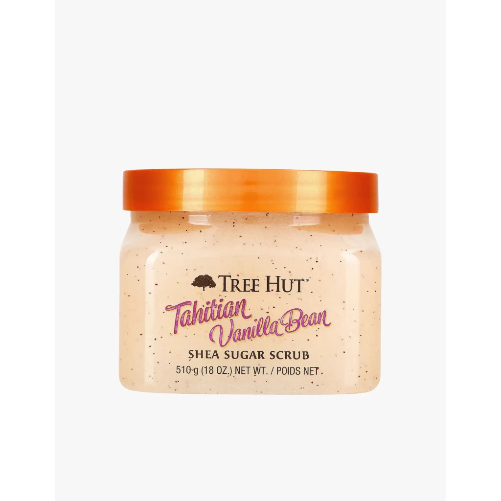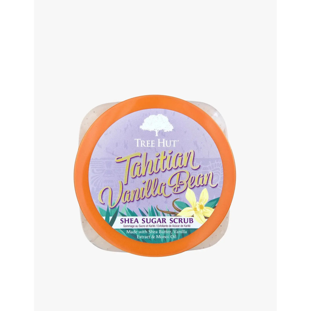 Цукровий скраб від Tree Hut збагачений олією ши, ванілі та безліччю інших натуральних олії, таких як олія таїтянскої моної, примули вечірньої, олія авокадо, макадамії, солодкого мигдалю, сафлору та апельсинової олії.