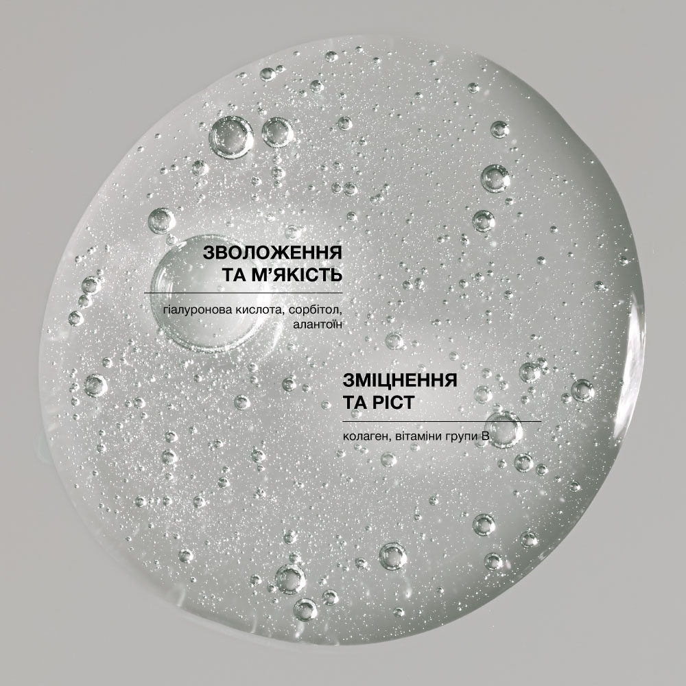 - Гідролізований колаген — забезпечує волосся амінокислотами, зміцнює його, підвищує еластичність і підтримує здоровий ріст.
