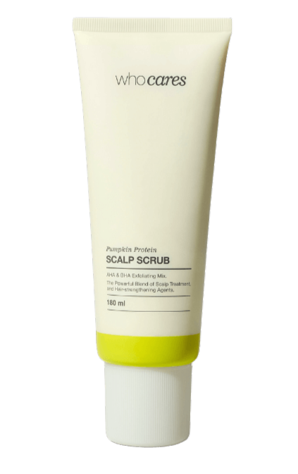 WhoCares Pumpkin Protein Scalp Scrub — кислотний скраб-пілінг для шкіри голови. Це перезавантаження для шкіри голови завдяки подвійній ексфоліації.