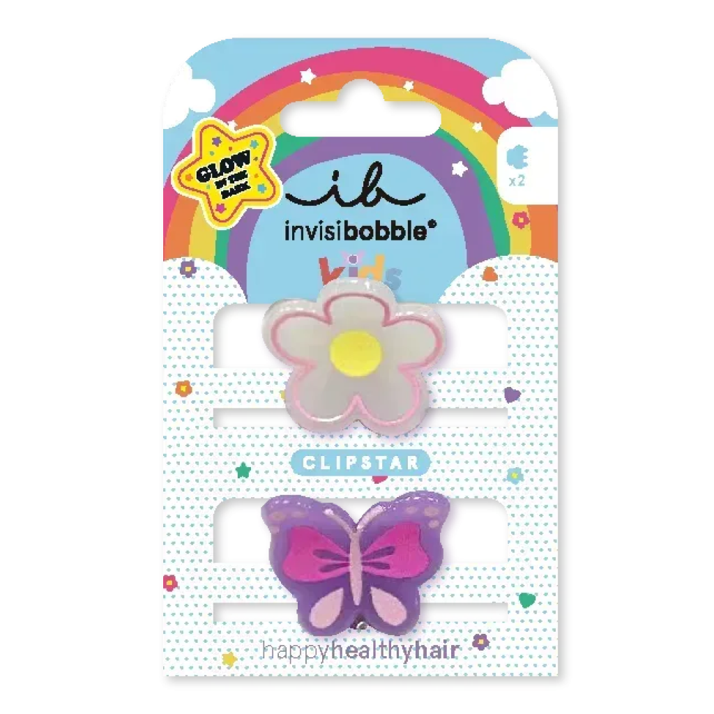 Заколки CLIPSTAR GLOW KIDS - дитячі аксесуари принесуть радість у ваше повсякденне життя та зроблять будь-яку зачіску привабливою. Нові CLIPSTARS - ідеальні для маленьких шукачів пригод, вони гарно тримають волосся, не перетискаючи і не пошкоджуючи його - ідеально підходять для тонкого і делікатного волосся. Заколки світяться в темряві.