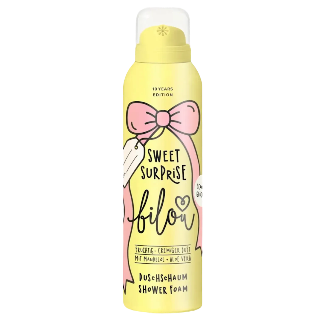Bilou Sweet Surprise — лімітована пінка для душу з фруктовим ароматом до 10 дня народження бренду Bilou. Ніжна пінка дбайливо очищає тіло від бруду та себуму, не пересушуючи шкіру. Засіб підходить для всіх типів шкіри, адже не порушує кислотно-лужний баланс. Пінка від Bilou має неймовірний аромат, який залишається на тілі та освіжає протягом всього дня.