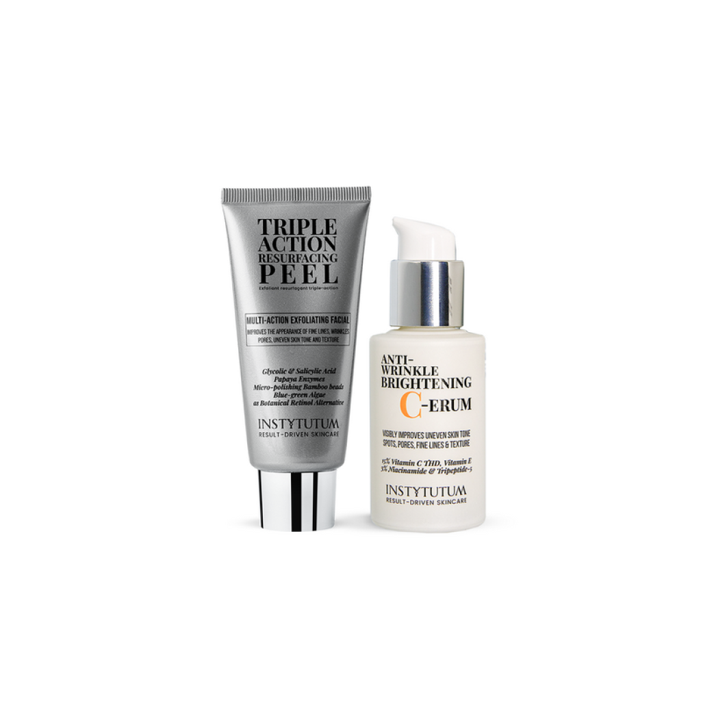 Instytutum набір "Anti- Pigmentation". Набір, з яким ви забудете про пігментацію. Кислотний пілінг з потрійною дією та серум з вітаміном С освітлять шкіру, вирівняють нерівний тон та захистять від наслідків впливу ультрафіолетового випромінювання.
