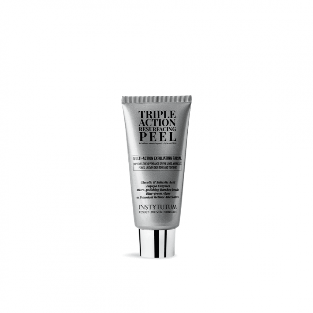 Instytutum Triple Action Resurfacing Peel – деликатный пилинг тройного действия, содержащий 10% кислот, энзимы папаи и микрогранулы бамбука, мягко обновляющие кожу, разглаживающие морщины, выравнивающие тон и освещающие пигментацию.