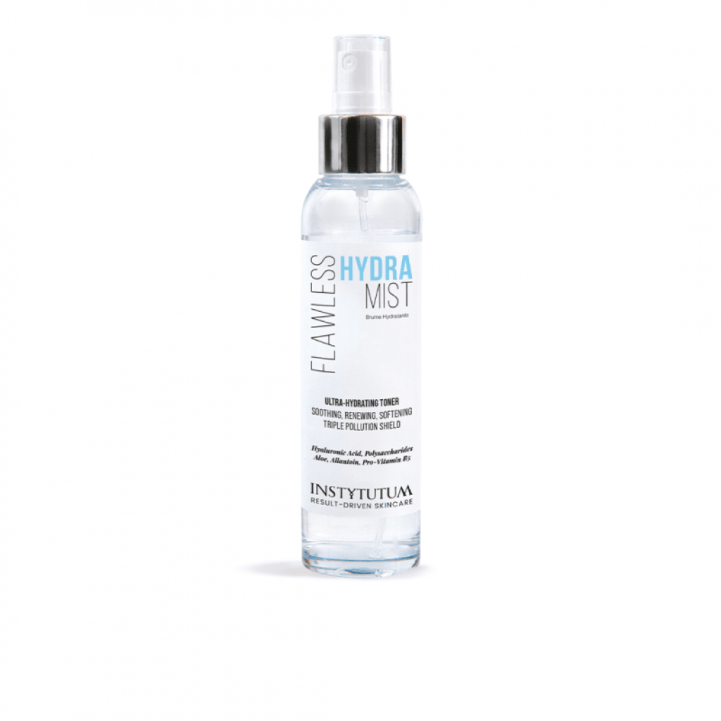 - Тонер Flawless Hydra Mist. После умывания равномерно нанесите тонер-мост на лицо, шею и зону декольте. В помещении наносите в течение дня для восстановления уровня влаги.