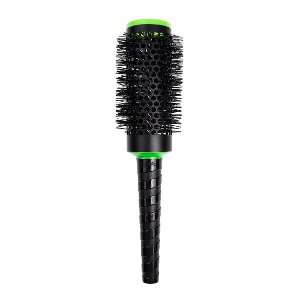 Закругленные зубчики бережно захватывают пряди, не повреждая структуру волос и предотвращая спутывание. Черный корпус с зелеными элементами подчеркивает стильный дизайн, делая щетку функциональной и привлекательной.