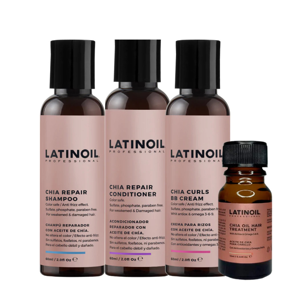 LatinOil Chia Oil Hair Treatment - олія для глибокого відновлення волосся за допомогою унікальної комбінації ефірних олій та корисних інгредієнтів (масло жожоба, олія чіа, вітамін Е). Зволожує кінчики волосся та попереджає посіченості, полегшує розчісування та придає блиск. Захищає волосся при сушінні феном, укладання плойкою та хімічної завивки. Надає глянцевого блиску Має приємний аромат.