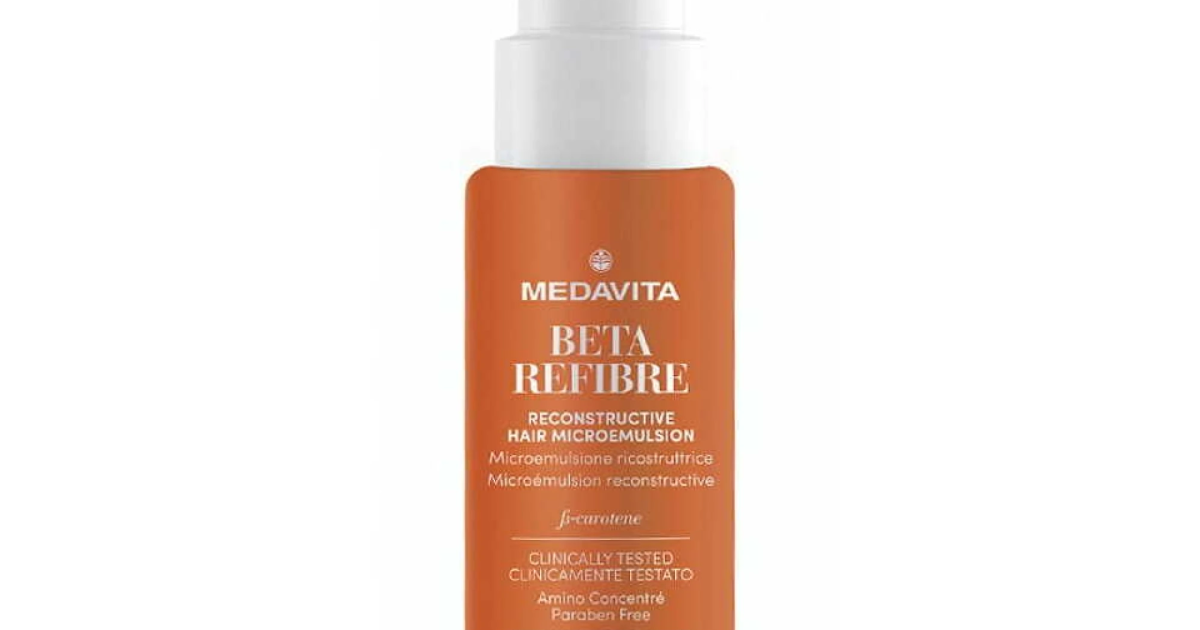 Medavita Beta Refibre Reconstructive Hair Microemulsion — відновлювальна мікроемульсія для глибокої реконструкції волосся , у вигляді дрібнодисперсного спрею.