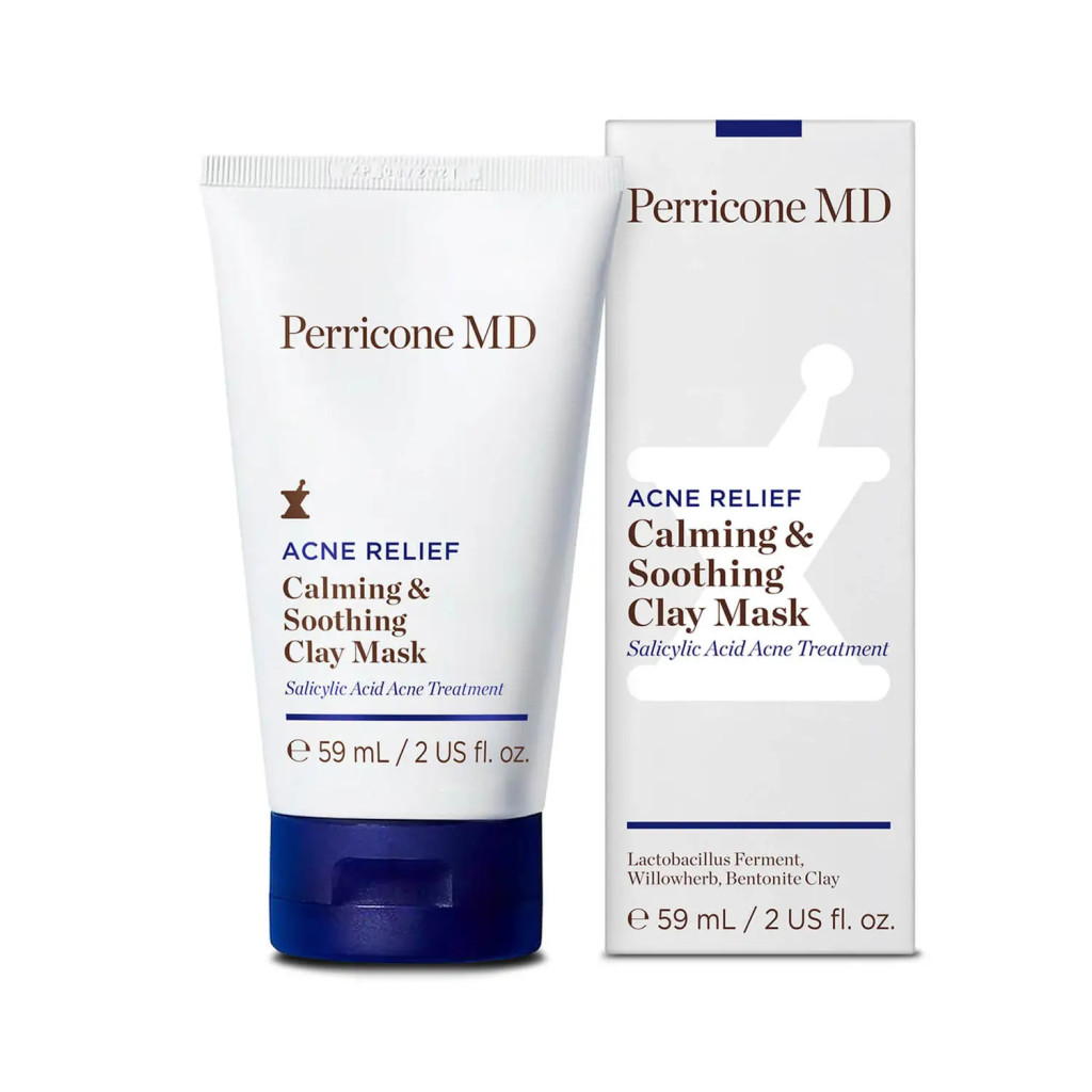 Perricone MD Blemish Relief Calming & Soothing Clay Mask - маска, применяемая для борьбы с высыпаниями, чтобы качественно питать воспаленную кожу и успокоить воспалительные элементы. Салициловая кислота, бентонитовая глина и ферменты лактобактерий мягко отшелушивают, открывают поры, удаляют загрязнения, поглощают излишки жира и борются с бактериями, вызывающими появление высыпаний. В сочетании с экстрактом вербы, быстро успокаивающей и уменьшающей покраснение от воспалительных элементов, эта осветительная маска делает кожу заметно более здоровой и увлажненной, придавая ей сияние.