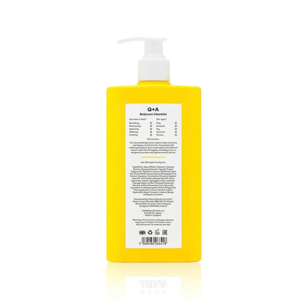 Aqua (Water), Glycerin, Cetearyl Alcohol, Glyceryl Stearate, Caprylic/Capric Triglyceride, Helianthus Annuus (Sunflower) Seed Oil, Ceramide NP, Ananas Sativus (Pineapple) Fruit Extract, Squalane, Simmondsia Chinensis (Jojoba) Seed Oil, Vitis Vinifera (Grape) Seed Oil, Olive Glycerides, Xylitol, Xylitylglucoside, Carbomer, Caprylyl Glycol, Sodium Stearoyl Glutamate, Glucose, Sodium Gluconate, Coco-Glucoside, Cyclodextrin, Anhydroxylitol, Parfum (Fragrance), Phenoxyethanol, Coconut Alcohol, Sodium Hydroxide, Hexyl Cinnamal, Linalool, Benzyl Salicylate, Coumarin.