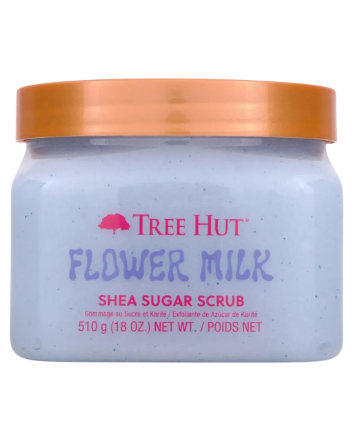 Tree Hut Flower Milk Sugar Scrub — цукровий скраб для тіла з ніжним квітково-молочним ароматом та комплексом рослинних екстрактів для делікатного відлущування та освітлення шкіри. Продукт містить натуральний цукор для м'якого очищення, екстракти солодки та клітории для вирівнювання тону, а також багату суміш олій для інтенсивного зволоження.